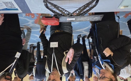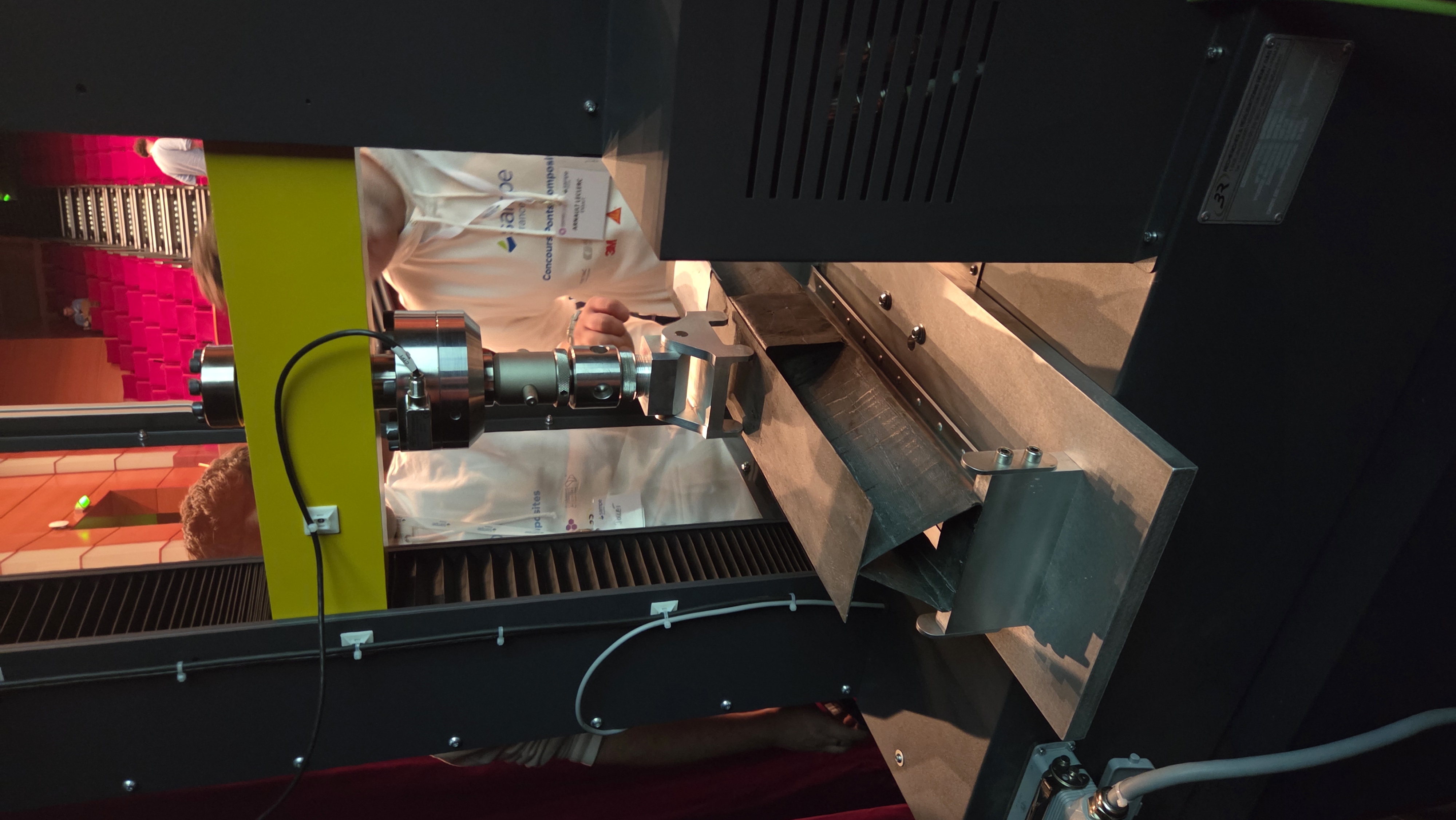 Les ponts sont testés en direct sur une machine d'essai, devant les l'ensemble des particpants des journées techniques. Chaque école à 3 minutes pour présenter son pont pendant l'installation sur la machine d'essai.